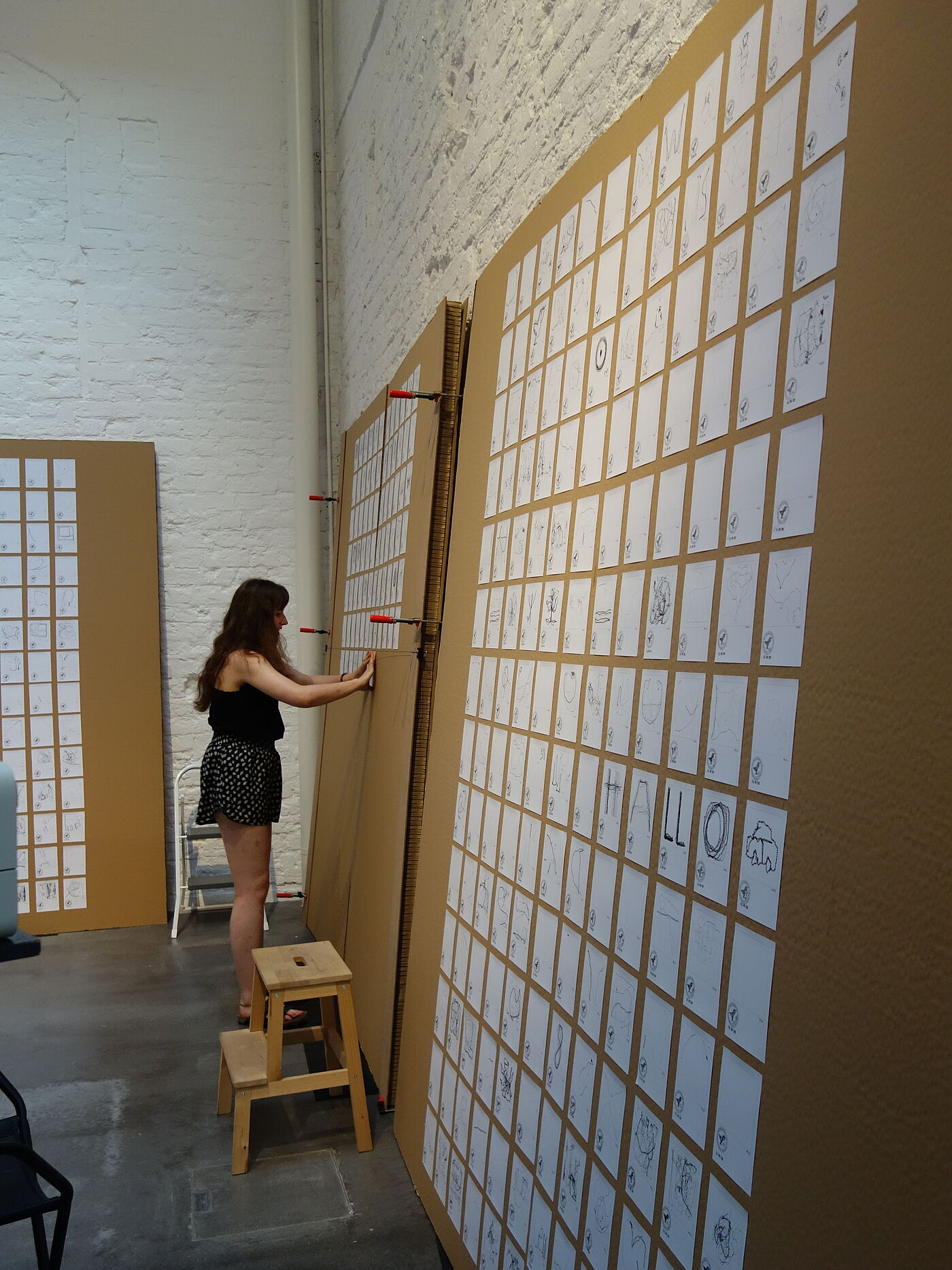 Auf einer 5 x 5 Meter großen markierten Fläche im Foyer des St. Annen-Museums in Lübeck werden die Besucher mit einer unter der Decke installierten Kamera erfasst. Das so aufgezeichnete Bild wird unmittelbar in eine Grafik umgewandelt, die in ihrer Abstraktion an ein Schnittmuster erinnert. Aus vielen einzelnen Schritten wird so das gesamte „SchRittmuster“ erzeugt. Durch Kooperation und Zusammenarbeit von vielen Menschen entsteht so aus einer individuellen Handlung ein zusammenhängendes, in sich verstricktes Muster. Jeder Schritt, jede Bewegung wird überwacht und hinterlässt eine Spur. Die Spur ist – wie jeder Mensch – ein Unikat und als solche erkennbar und zurückzuführen auf den Urheber.