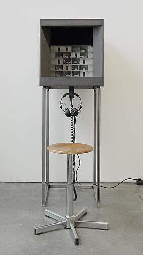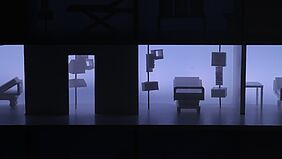 Ein Blick in ein Gebäude, ein Ausschnitt, Stockwerk über Stockwerk, eine Rasterung aus Wänden und Decken wird nach und nach sichtbar. Die Szenerie ist in Weiß gehalten - von den Krankenhausbetten, über die Treppen bis hin zu den Stationstüren. Als Betrachter:in blickt man auf ein Miniaturszenario, eine kleine Krankenhauswelt. Louis, Franziska und Ralf verbindet der Wunsch in ihrem Beruf Menschen zu helfen. Als Pflegekräfte sind sie in einem Gesundheitssystem mit herausfordernden Rahmenbedingungen tätig. Überstunden, schwere Schicksale und hohe Verantwortung prägen ihren Alltag. Durch das Aufsetzen der Kopfhörer tauchen Zuhörer ein in die Krankenhauswelt. Sprecher:innen erzählen ihre Geschichten während eine Geräuschkulisse diese untermalt. Dazu werden die Stationen und Räume situativ beleuchtet. Die Geschichten der Pflegekräfte erwachen damit zum Leben. Zuhörer können durch das Abnehmen der Kopfhörer aus der Situation aussteigen. Eine Möglichkeit, die die Pflegekräfte in der realen Welt nicht haben.
