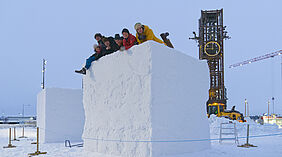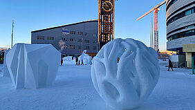 Neben fünf weiteren teilnehmenden Teams haben auch die Wismarer zwei Schneeskulpturen gemeinsam realisiert. Aus jeweils einem 3 m x 3 m x 3 m großen Rohblock, also 27 Kubikmeter mit rund 20 Tonnen Gewicht entstand eine Skulptur zum Thema „Utrymningsplan” (Schwedisch = Fluchtplan) und eine weitere zum Thema „Jeahkàl” (Samisch = Rentierflechte). Entworfen hatten die Studierenden die Skulpturen vorbereitend in Wismar in Schnee und Ton.