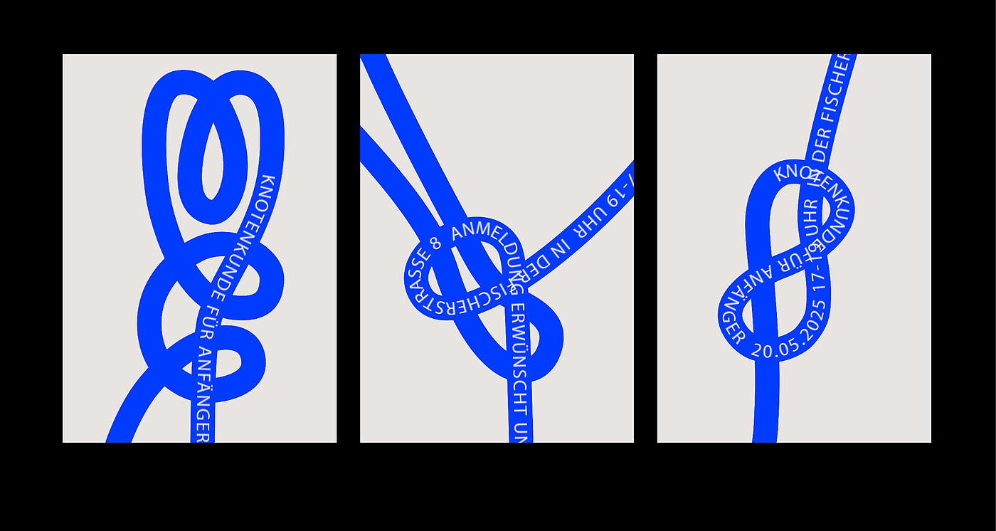 Als Beispiele der Arbeitsergebnisse hier eine Plakatserie zur Bewerbung eines Kurses zur Knotenkunde in einem Segelverein, eine Plakatserie zur Hansesail, dem jährlichen Traditionsseglertreffen in Rostock (biede Anna-Maria Siggelkow), und Reels für den Drum & Bass Artist »Moonadict« (Erik Meißner).