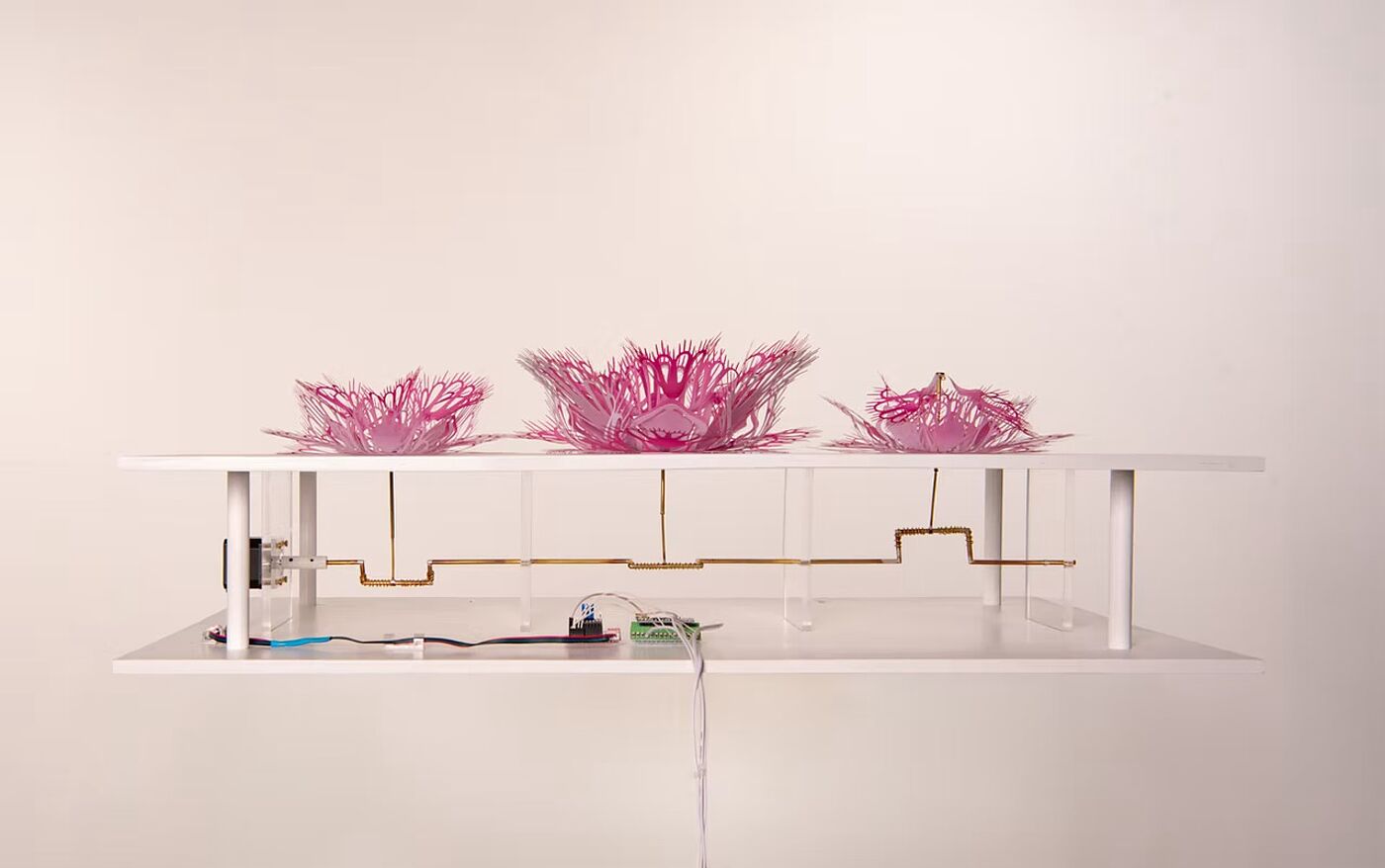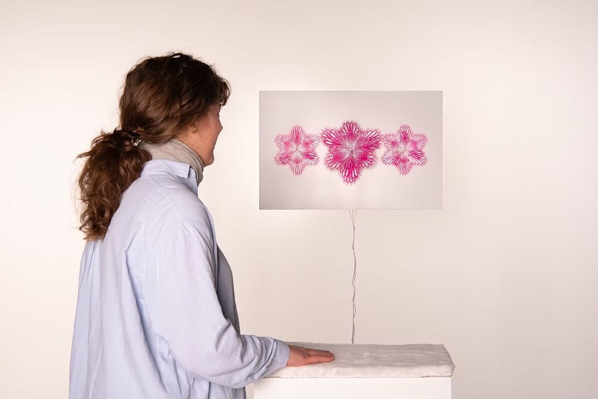 Der Mensch ist ein soziales Wesen und kann durch Berührung Freude empfinden. Ooh übersetzt die Idee einer blühenden Wiese, die erst dann ihre volle Schönheit entfaltet, wenn sie durch den Besucher aktiv angestoßen wird. Blumen beginnen erst dann zu „blühen“ wenn der Betrachter bewusst mit ihnen interagiert. Damit wird das „Bedürfnis nach Berührung“ befriedigt, indem eine Oberfläche geschaffen wird, die einerseits zur Berührung einlädt und andererseits das Gefühl hervorruft, durch die Aktivierung der Oberfläche eine wesentliche Rolle in der Funktionalität des Objekts zu spielen.