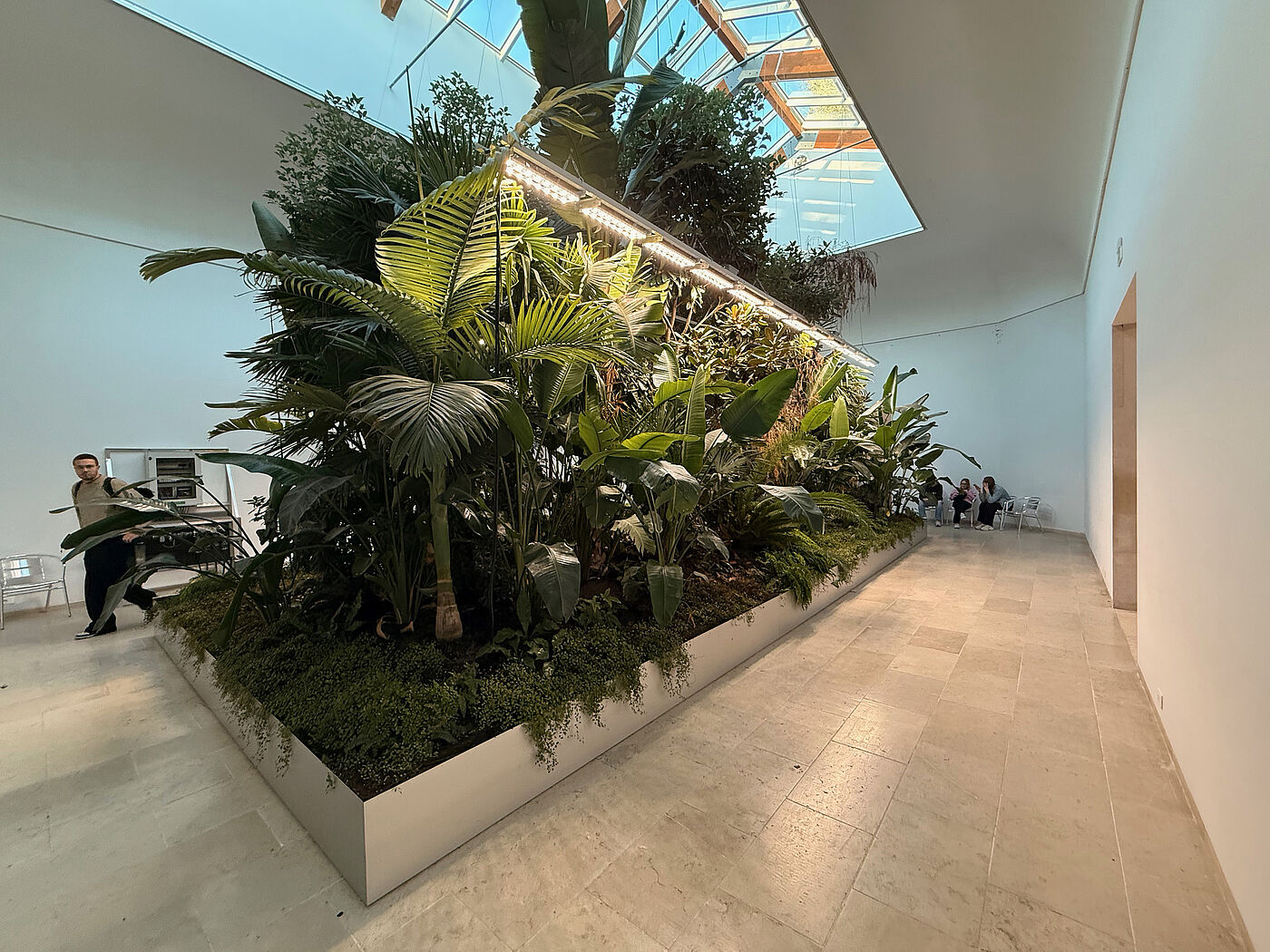 ⇢ Charlott Serwatka: Die Konzepte, die es geschafft haben, die Verbindung von inhaltlicher Tiefe und räumlicher Erfahrung gleichzeitig spürbar zu machen. Für mich stachen dabei vor allem Ausstellungen hervor, die komplexe Themen greifbar und unmittelbar erfahrbar machten – sei es durch subtile architektonische Eingriffe, interaktive Installationen oder innovative Inszenierungen wie der belgische Pavillon. Dieser beschäftigte sich mit der Frage, wie Ökosysteme als intelligente Netzwerke funktionieren, also wie Pflanzen, Mikroorganismen, Klimaeinflüsse und technologische Sensorik miteinander interagieren. Statt dies rein theoretisch zu vermitteln, wurde der Raum in eine Art begehbare Klima- und Vegetationsinstallation verwandelt. Durch unterschiedliche Feuchtigkeitszonen, Lichtstimmungen und Pflanzenformationen konnte man körperlich erleben, wie sensibel solche Ökosysteme aufgebaut sind und wie sie auf Störungen oder Veränderungen reagieren. Man bewegte sich durch ein lebendiges System, das als Ganzes funktionierte. Gleichzeitig wurden digitale Elemente und Messdaten integriert, sodass die Verbindung von natürlicher und technologischer Intelligenz auf eine sehr ruhige, aber eindrückliche Art sichtbar wurde. Auch wenn der Pavillon kein vollständig funktionierendes, autonomes Ökosystem abbildete, fand ich den Ansatz überzeugend. Er hat in dem Rahmen, den eine Ausstellung bieten kann gut funktioniert, finde ich. Die Idee wurde räumlich erfahrbar, die Atmosphäre war eindrucksvoll, und die Verbindung von Natur und Technologie wurde auf verständliche und anschauliche Weise vermittelt.