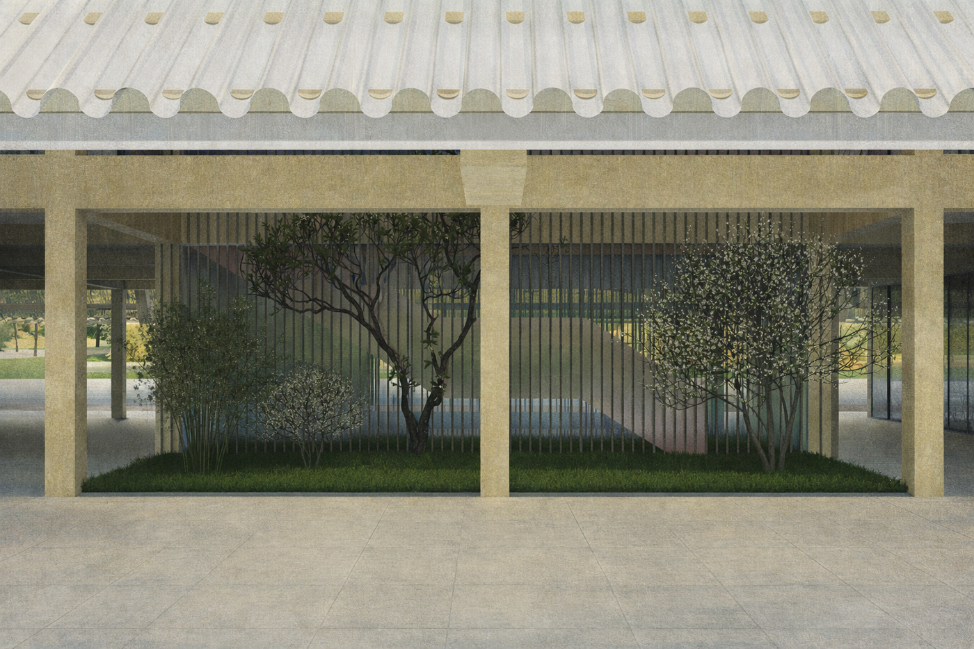 The existing topography is preserved as a counterpoint to the project’s linear order. The slope and greenery introduce landscape as an active layer, softening the infrastructural logic and anchoring the architecture in its site.