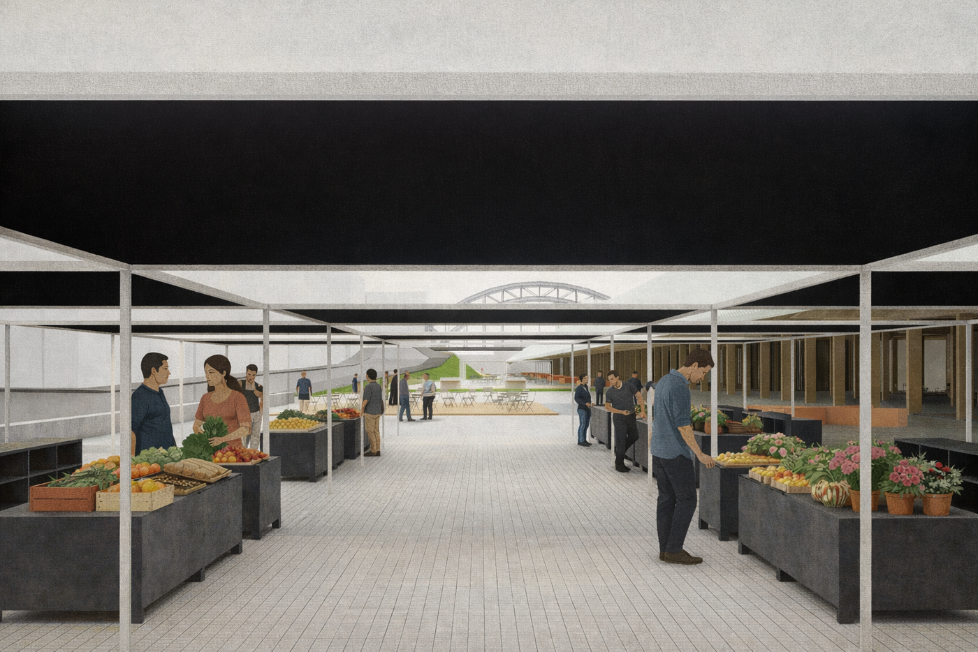 The proposal explores architecture as an interface between natural processes and urban systems, redefining the farm as an open, legible structure within the city where growth, movement and public life intersect.