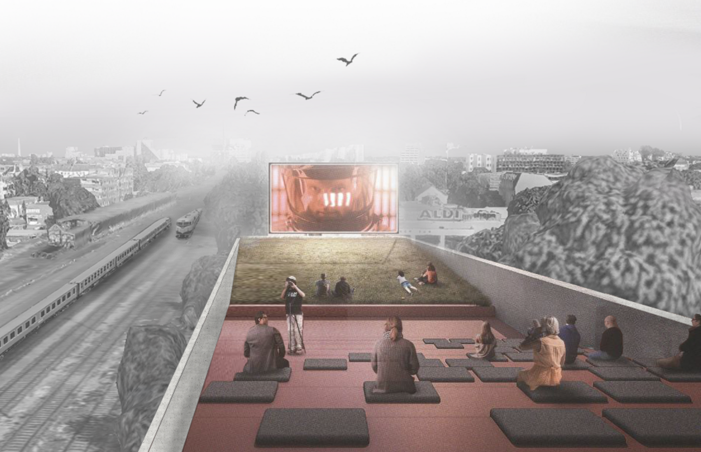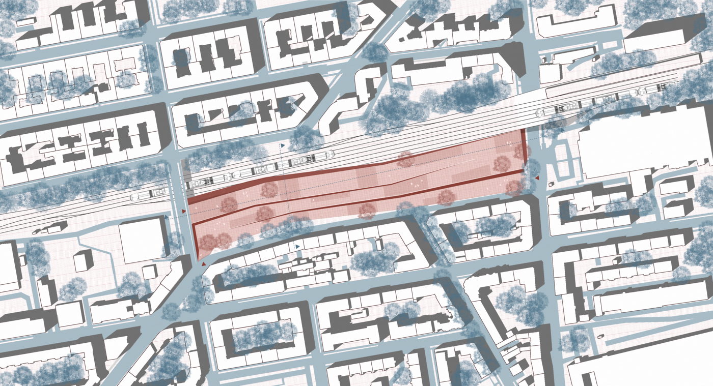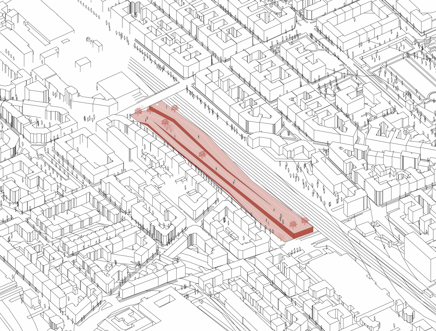 Based on the analysis of the site, it became clear that the surrounding residential area is very secluded, dominated by traffic and anonymity. What is especially missing is a place where all generations can meet—a communal space where new encounters happen and creativity can flourish. The project aims to create a place that spatially connects the underpass and the bridge, bringing the previously neglected site back to life. It is designed not only as a spatial, but also as a social connector, offering temporary uses such as creative workshops, leisure activities, and more private studios to foster a mixed, vibrant neighborhood. The exact use of the space will be determined by the residents, leaving room for f lexibility and new possibilities.