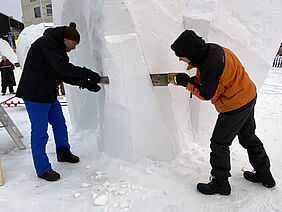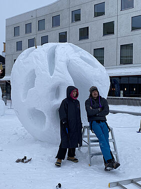 Während des Schneefestivals standen wir im direkten Austausch und in Zusammenarbeit mit internationalen Eis- und Schneeexperten aus diversen gestalterischen Berufen. Wir besuchten zudem das nahegelegene ICEHOTEL in Jukkasjärvi (eine ephemere Architektur aus Eis und Schnee), die neue Kiruna Kunsthalle und das Kiruna Musikfestival. Die besondere städtebauliche Entwicklung Kirunas, der nördlichsten Stadt in Schweden, welche geprägt ist von einer gigantischen unterirdischen Eisenerzmine inmitten der Weite des arktischen Fjälls, der Mix und Konflikt schwedischer und samischer Kultur sowie tiefe winterliche Temperaturen wurden erfahrbar.