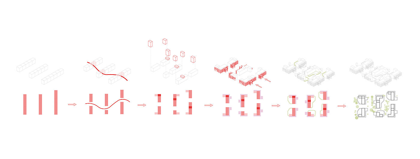 Der Fokus liegt auf dem Dialog und Kontrast zwischen verschiedenen Bereichen sowie der Erforschung der Beziehungen zwischen Raumprogramm und Architektur. Die Integration in den bestehenden Bestand und die spannende Lage innerhalb der vorhandenen Bebauungsstruktur sind ebenfalls wichtige Aspekte. Es werden Konzepte für hybride Gebäude entwickelt, die neben Wohnnutzungen auch eine Mobilitätsstation und ergänzende Angebote enthalten. Das Prinzip des Teilens soll auf allen Ebenen sichtbar werden: von der Struktur der einzelnen Wohnung über gemeinschaftlich genutzte Flächen im Innen- und Außenraum bis